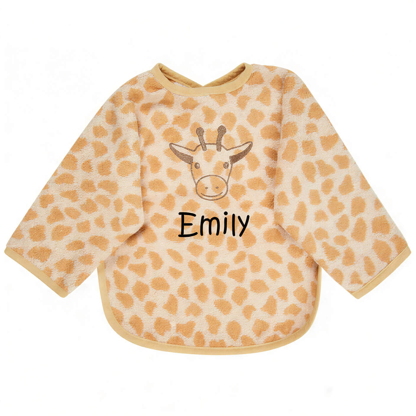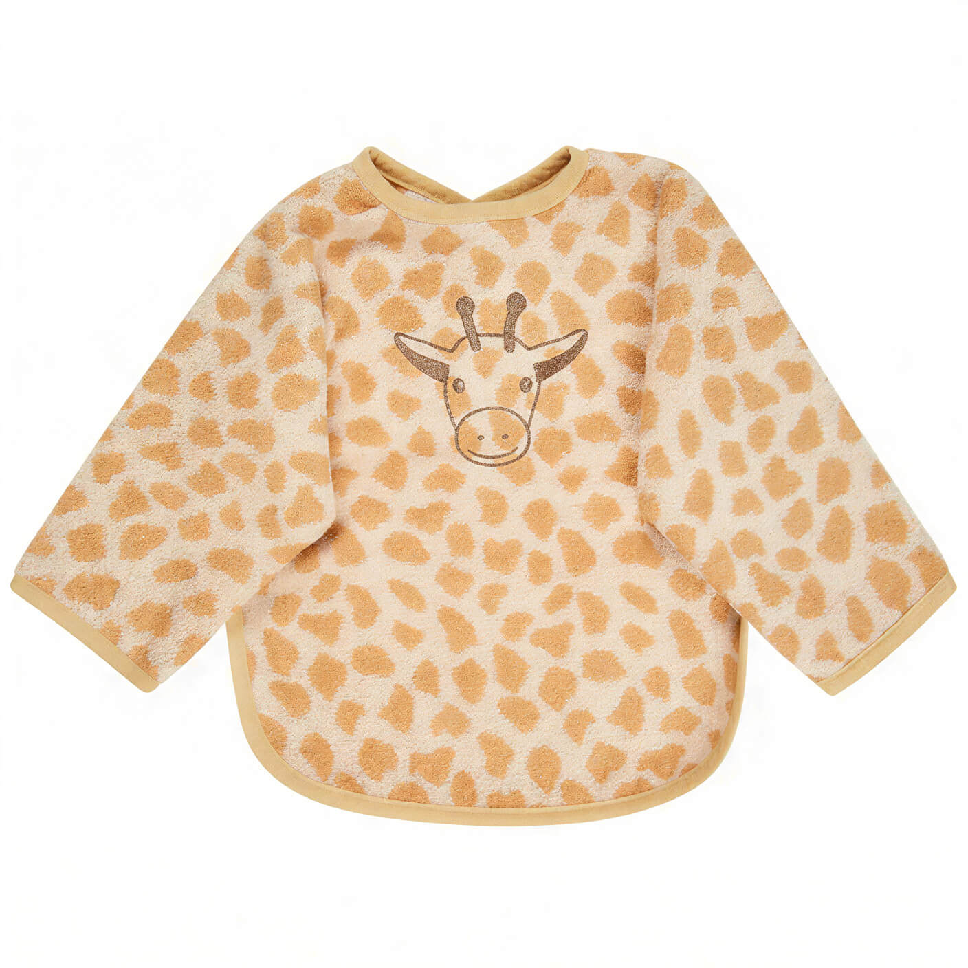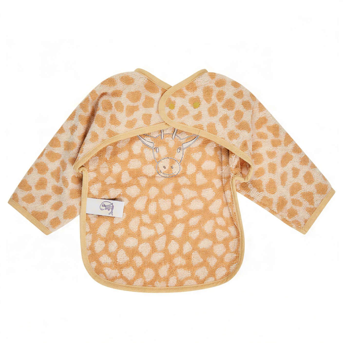 Wenn kleine Essensentdecker selbstständig löffeln und probieren, bleibt kaum ein Fleck aus. Genau dafür ist das Ärmellätzchen Giraffe Kaya mit Druckknopfverschluss gemacht: Es schützt die Kleidung zuverlässig vor Kleckern und Feuchtigkeit, damit Eltern entspannt bleiben können und Kinder ihre Mahlzeiten unbeschwert genießen.