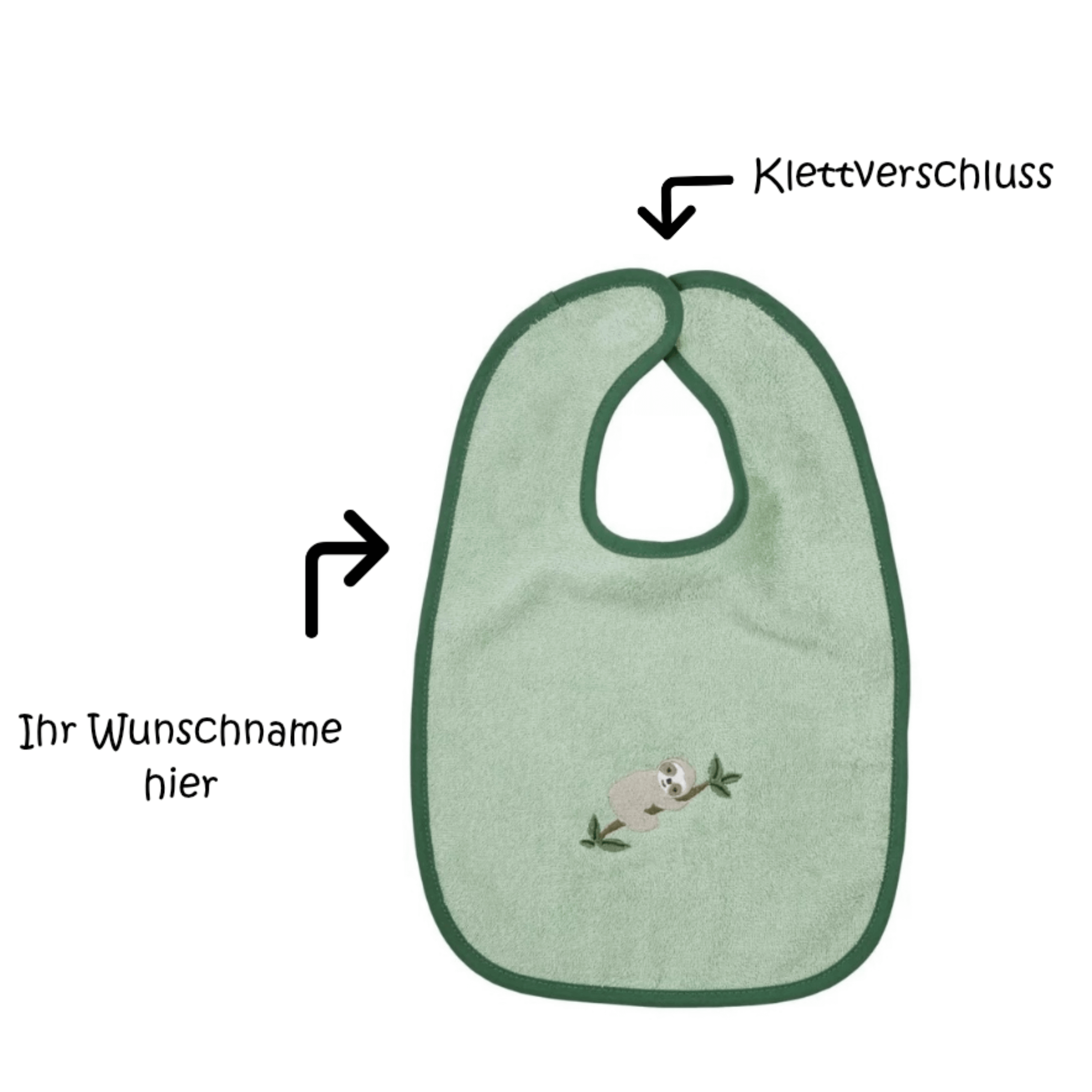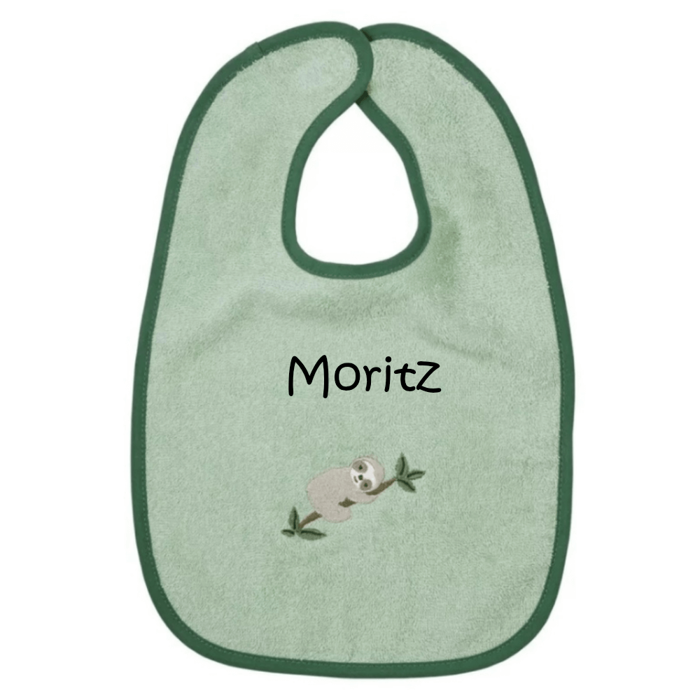 Frottee Babylätzchen mit Namen bestickt | Faultier helloliv